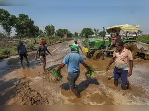 Farm labourers plant rice saplings in a field on the outskirts of Ahmedabad, India, July 21, 2023. REUTER