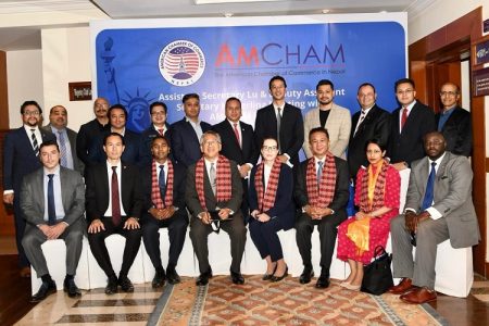 The group met with the Honorable Finance Minister of Nepal Barsha Man Pun, CEO of the Investment Board of Nepal Sushil Bhatta, and other officials to discuss the Government’s reform agenda and critical steps needed to facilitate additional investment. The group also commended the Government for its steps towards gaining the country’s first sovereign credit rating, and its efforts towards passing an electricity bill which will open transmission to competitive bidding processes and help power Nepal and the wider region. The Chamber and AmCham Nepal co-hosted an executive roundtable on “Advancing U.S.-Nepal Commercial Relations” featuring the Honorable Dean Thompson, U.S. Ambassador to Nepal, as well as representatives from USAID, The White House National Security Council, the U.S. Commercial Service, and over forty business executives from across the private sector. Roundtable participants addressed progress and further reforms required to fully-enable Nepal’s business environment and private sector to generate sustainable, inclusive, and resilient growth. Addressing the Inaugural Session of the Nepal Investment Summit, Amb. Keshap said “American businesses have been investing and operating here in Nepal for more than half a century. American firms like MetLife and Coca-Cola have contributed directly to the development story of Nepal and provided employment opportunities, tax revenue, skilling, and so much more.” “However,” said Keshap, “America only accounts for roughly 3% of FDI in Nepal, and we must work collaboratively to grow that number. Creating a more level-playing field for foreign companies, building regulatory predictability and mechanisms for stakeholder inputs, and focusing on ease and speed of doing business will improve our overall bilateral commercial relationship and support the wellbeing of both our peoples. These efforts will act as catalyzers as Nepal approaches Least Developed Country (LDC) graduation and enters middle-income status.” Nirmal Kajee Shrestha, Chairman of AmCham Nepal and VP/General Manager of MetLife Nepal, highlighted that “At AmCham Nepal, our vision is to showcase Nepal as a land of boundless opportunities, rich in natural resources and human talent alike, and to foster a policy and regulatory environment that leverages those advantages. We aim to instill confidence amongst regulators that the advancement of the private sector and more investment from the United States will not only drive socio-economic progress but also lead to significant enhancements in our public services, infrastructure, and sustainable environmental policies. Creating that enabling ecosystem will allow for new Foreign Direct Investment (FDI) from American investors and safeguard the interests of existing U.S. companies in Nepal. This is essential for fostering inclusive economic growth and prosperity throughout our nation.” |